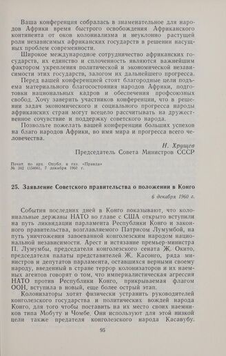 Заявление Советского правительства о положении в Конго. 6 декабря 1960 г.
