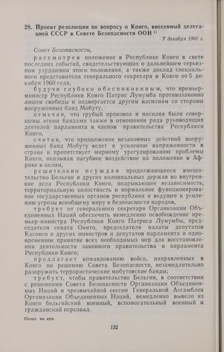 Проект резолюции по вопросу о Конго, внесенный делегацией СССР в Совете Безопасности ООН. 7 декабря 1960 г.