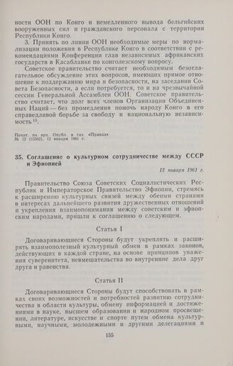 Соглашение о культурном сотрудничестве между СССР и Эфиопией. 13 января 1961 г.