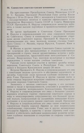 Совместное советско-ганское коммюнике. 24 июля 1961 г. // Печат. по арх. Опубл. в газ. «Правда», № 207 (15697), 26 июля 1961 г.