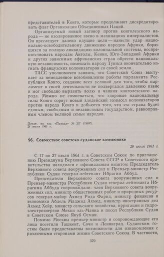 Совместное советско-суданское коммюнике. 26 июля 1961 г.