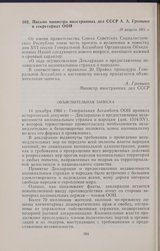Главная СССР и страны Африки СССР и страны Африки. 1946-1962 гг. В 2 т. Т. 2. (сентябрь 1960 г.-... Документы Письмо министра иностранных дел СССР А.А. Громыко в секретариат ООН...