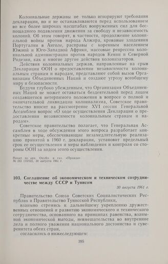 Соглашение об экономическом и техническом сотрудничестве между СССР и Тунисом. 30 августа 1961 г. // Печат. по арх. Опубл. в «Ведомостях Верховного Совета СССР», № 11(1098), 15 марта 1962 г.