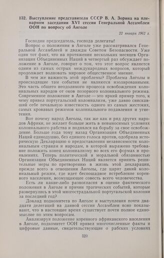 Выступление представителя СССР В.А. Зорина на пленарном заседании XVI сессии Генеральной Ассамблеи ООН по вопросу об Анголе. 22 января 1962 г. // Печат. по арх.