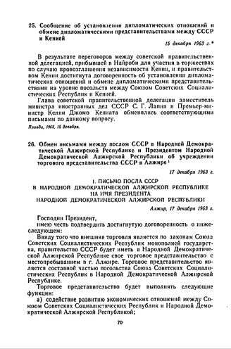 Сообщение об установлении дипломатических отношений и обмене дипломатическими представительствами между СССР и Кенией. 15 декабря 1963 г. // Правда, 1963, 15 декабря.