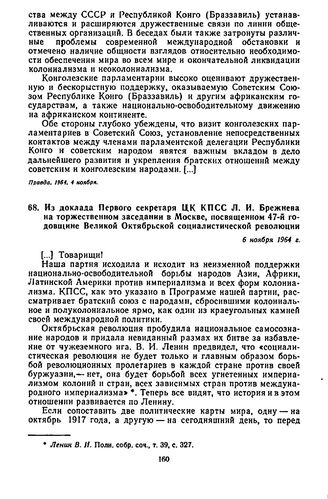 Из доклада Первого секретаря ЦК КПСС Л.И. Брежнева на торжественном заседании в Москве, посвященном 47-й годовщине Великой Октябрьской социалистической революции. 6 ноября 1964 г.