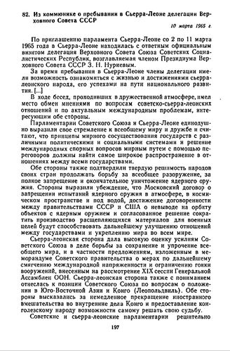 Из коммюнике о пребывании в Сьерра-Леоне делегации Верховного Совета СССР. 10 марта 1965 г. // Известия, 1965, 15 марта.