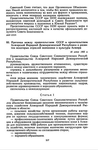 Протокол между правительством СССР и правительством Алжирской Народной Демократической Республики о развитии некоторых отраслей экономики и культуры Алжира. 18 июня 1965 г. // АВП СССР. Опубл. в Сборнике действующих договоров, соглашений и конвенций, заключенных СССР с иностранными государствами. М., 1971, вып. XXIV, с. 96-97.
