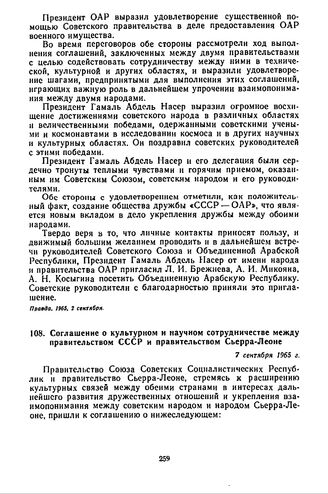 Соглашение о культурном и научном сотрудничестве между правительством СССР и правительством Сьерра-Леоне. 7 сентября 1965 г. // АВП СССР. Опубл. в Сборнике действующих договоров, соглашений и конвенций, заключенных СССР с иностранными государствами. М., 1971, вып. XXIV, с. 535-537.