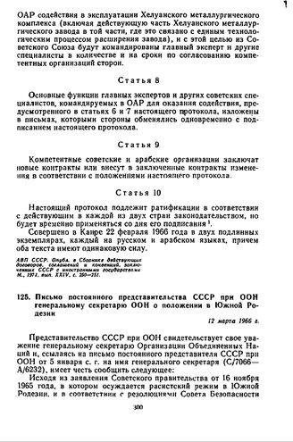 Письмо постоянного представительства СССР при ООН генеральному секретарю ООН о положении в Южной Родезии. 12 марта 1966 г. // АВП СССР.