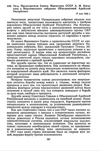 Речь Председателя Совета Министров СССР А.Н. Косыгина в Национальном собрании Объединенной Арабской Республики. 17 мая 1966 г.
