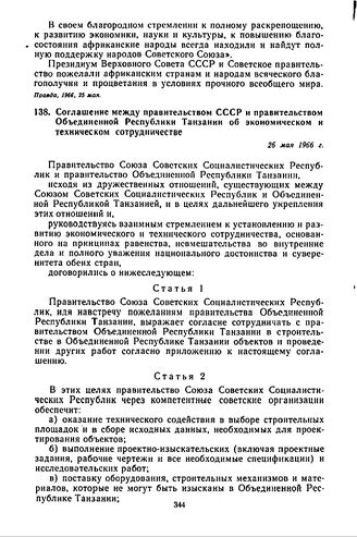 Соглашение между правительством СССР и правительством Объединенной Республики Танзании об экономическом и техническом сотрудничестве. 26 мая 1966 г.