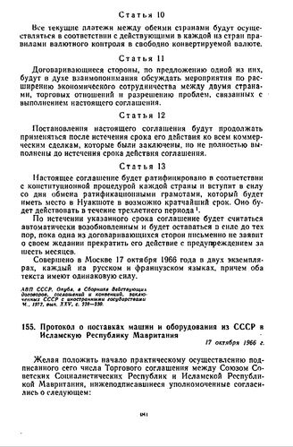 Протокол о поставках машин и оборудования из СССР в Исламскую Республику Мавритания. 17 октября 1966 г.