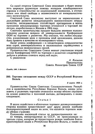 Торговое соглашение между СССР и Республикой Верхняя Вольта. 8 март...