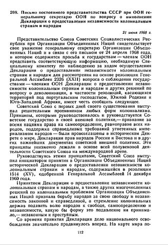 Письмо постоянного представительства СССР при ООН генеральному секретарю ООН по вопросу о выполнении Декларации о предоставлении независимости колониальным странам и народам. 21 июня 1968 г.