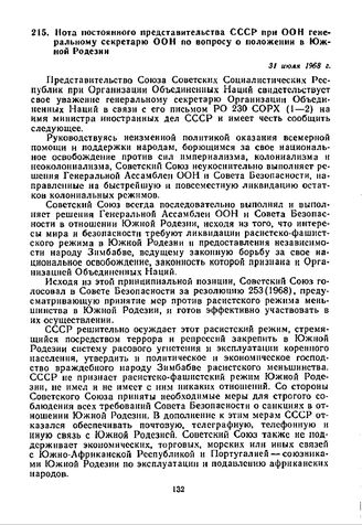 Нота постоянного представительства СССР при ООН генеральному секретарю ООН по вопросу о положении в Южной Родезии. 31 июля 1968 г. // АВП СССР. Опубл. в изложении в: Правда, 1968, 11 августа.