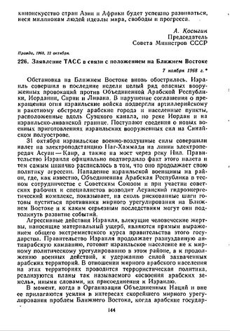 Заявление ТАСС в связи с положением на Ближнем Востоке. 7 ноября 1968 г. // Правда, 1968, 7 ноября.