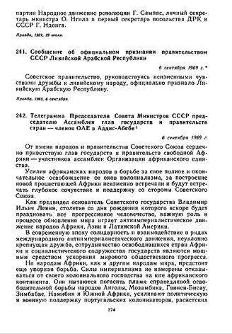 Телеграмма Председателя Совета Министров СССР председателю Ассамблеи глав государств и правительств стран — членов ОАЕ в Аддис-Абебе. 6 сентября 1969 г. // Правда, 1969, 9 сентября.