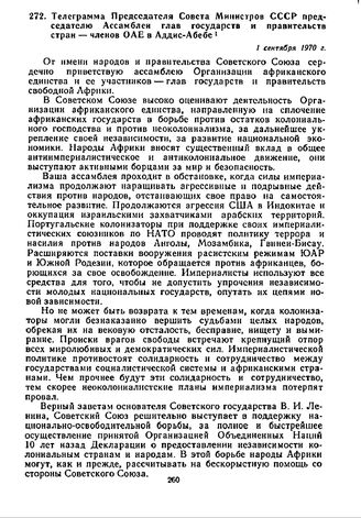 Телеграмма Председателя Совета Министров СССР председателю Ассамблеи глав государств и правительств стран — членов ОАЕ в Аддис-Абебе. 1 сентября 1970 г. // Правда, 1970, 2 сентября.