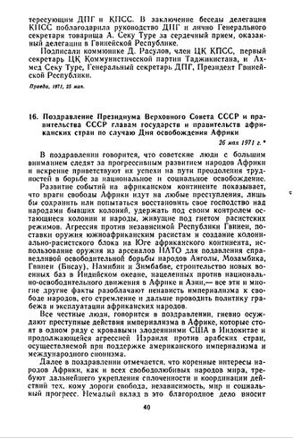 Поздравление Президиума Верховного Совета СССР и правительства СССР главам государств и правительств африканских стран по случаю Дня освобождения Африки. 26 мая 1971 г.