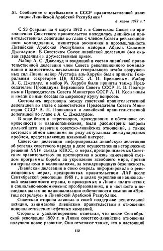 Сообщение о пребывании в СССР правительственной делегации Ливийской Арабской Республики. 8 марта 1972 г. // Правда, 1972, 8 марта.