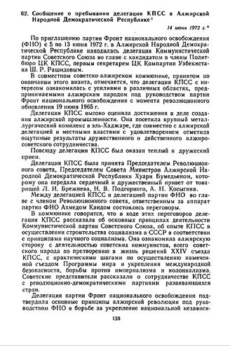 Сообщение о пребывании делегации КПСС в Алжирской Народной Демократической Республике. 14 июня 1972 г.