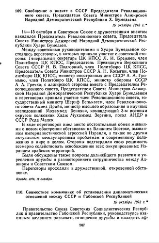 Сообщение о визите в СССР Председателя Революционного совета, Председателя Совета Министров Алжирской Народной Демократической Республики X. Бумедьена. 16 октября 1973 г. // Правда, 1973, 16 октября.