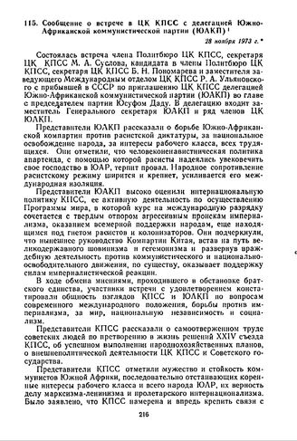 Сообщение о встрече в ЦК КПСС с делегацией Южно-Африканской коммунистической партии (ЮАКП). 28 ноября 1973 г. // Правда, 1973, 28 ноября.
