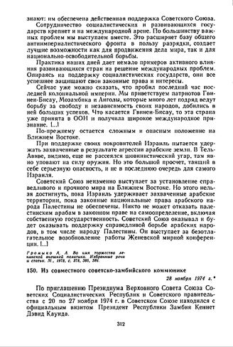 Из совместного советско-замбийского коммюнике. 28 ноября 1974 г. // Правда, 1974, 28 ноября.