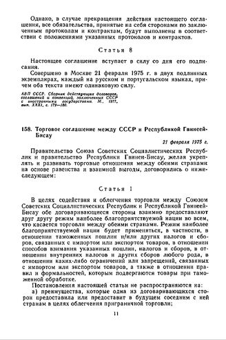 Торговое соглашение между СССР и Республикой Гвинеей-Бисау. 21 февраля 1975 г. // АВП СССР. Сборник действующих договоров, соглашений и конвенций, заключенных СССР с иностранными государствами. М., 1977, вып. ХХXI, с. 180-182.
