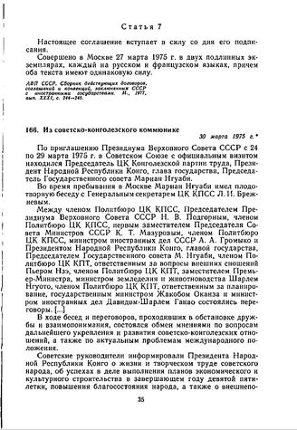 Из советско-конголезского коммюнике. 30 марта 1975 г.