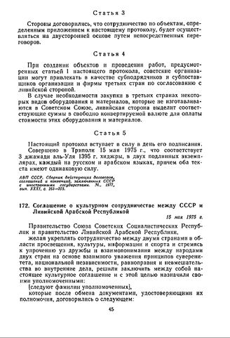 Соглашение о культурном сотрудничестве между СССР и Ливийской Арабской Республикой. 15 мая 1975 г.