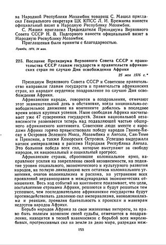 Послание Президиума Верховного Совета СССР и правительства СССР главам государств и правительств африканских стран по случаю Дня освобождения Африки. 25 мая 1976 г.
