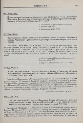 Постановление Святейшего Патриарха Тихона и Священного Синода в соединенном присутствии с Высшим Церковным Советом о прогонах членам Собора на проезд в Москву и обратно в епархии осенью 1918 года. № 76. 10(23).04.1918 г. // Церковные Ведомости. 1918. № 19/20.