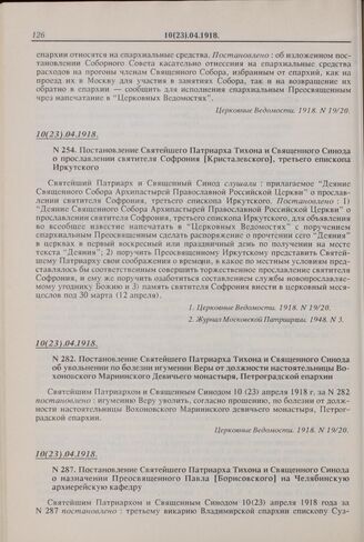Постановление Святейшего Патриарха Тихона и Священного Синода о назначении Преосвященного Павла [Борисовского] на Челябинскую архиерейскую кафедру. № 287. 10(23).04.1918 г. // Церковные Ведомости. 1918. № 17/18.