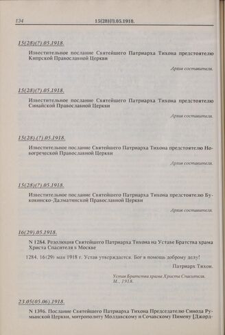 Известительное послание Святейшего Патриарха Тихона предстоятелю Кипрской Православной Церкви. 15(28)(?).05.1918 г.