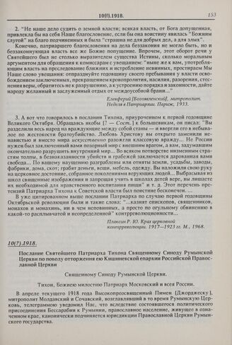 Послание Святейшего Патриарха Тихона Священному Синоду Румынской Церкви по поводу отторжения ею Кишиневской епархии Российской Православной Церкви. 10(?).1918 г.