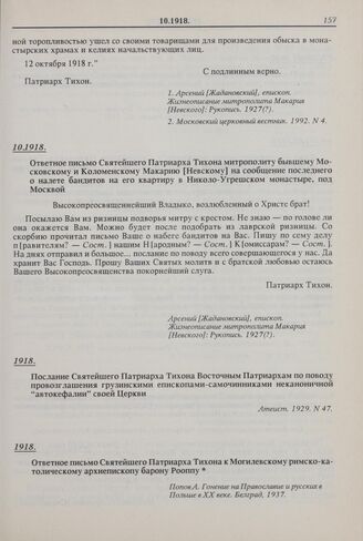 Ответное письмо Святейшего Патриарха Тихона митрополиту бывшему Московскому и Коломенскому Макарию [Невскому] на сообщение последнего о налете бандитов на его квартиру в Николо-Угрешском монастыре, под Москвой. 10.1918 г. // Арсений [Жадановский], епископ. Жизнеописание митрополита Макария [Невского]: Рукопись. 1927(?).