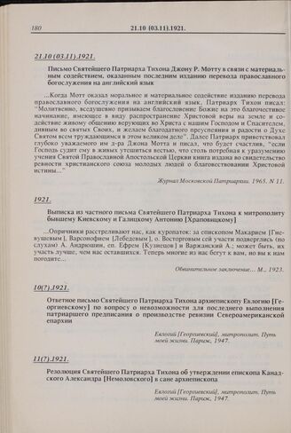 Резолюция Святейшего Патриарха Тихона об утверждении епископа Канадского Александра [Немоловского] в сане архиепископа. 11(?).1921 г. // Евлогий [Георгиевский], митрополит. Путь моей жизни. Париж, 1947.