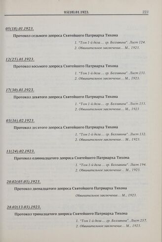 Протокол девятого допроса Святейшего Патриарха Тихона. 17(30).01.1923 г.