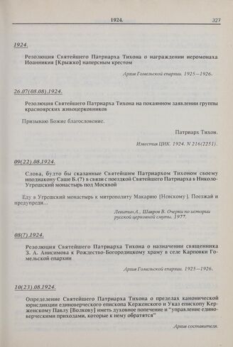 Определение Святейшего Патриарха Тихона о пределах канонической юрисдикции единоверческого епископа Керженского и Указ епископу Керженскому Павлу [Волкову] иметь духовное попечение и «управление единоверческими приходами, которые к нему обратятся»...