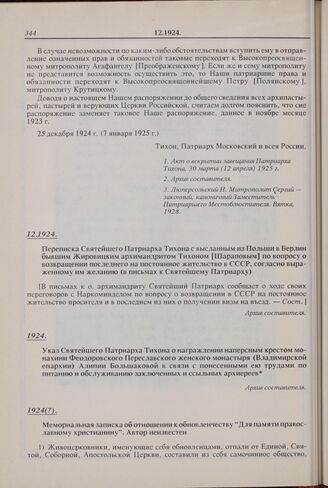 Главная Акты Святейшего Тихона, Патриарха Московского и всея России, поздне... Указ Святейшего Патриарха Тихона о награждении наперсным крестом мо...
