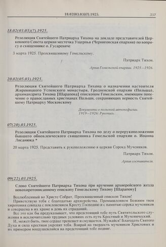 Акты Святейшего Тихона, Патриарха Московского и всея России, позднейшие документы и переписка о каноническом преемстве высшей церковной власти. 1917-1943 гг.: Сб. — М.: Изд-во Православ. Свято-Тихонов. Богослов. Ин-та, 1994.