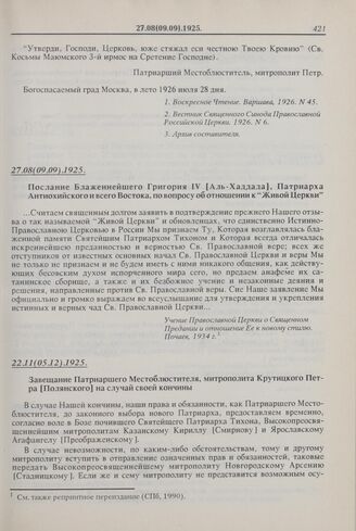 Завещание Патриаршего Местоблюстителя, митрополита Крутицкого Петра [Полянского] на случай своей кончины. 22.11(05.12). 1925 г. // Польский М., протопресвитер. Новые мученики российские. Джорданвилль, 1957. Т. 2.