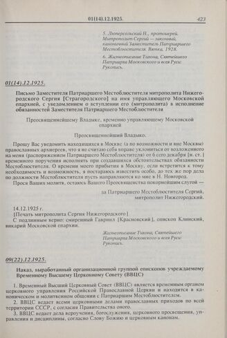 Письмо Заместителя Патриаршего Местоблюстителя митрополита Нижегородского Сергия [Страгородского] на имя управляющего Московской епархией, с уведомлением о вступлении его (митрополита) в исполнение обязанностей Заместителя Патриаршего Местоблюстителя. 01(14).12.1925 г. // Жизнеописание Тихона, Святейшего Патриарха Московского и всея Руси: Рукопись.
