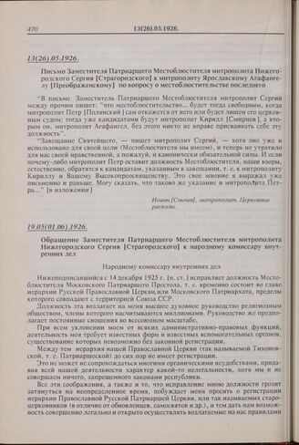 Обращение Заместителя Патриаршего Местоблюстителя митрополита Нижегородского Сергия [Страгородского] к народному комиссару внутренних дел. 19.05(01.06).1926 г.