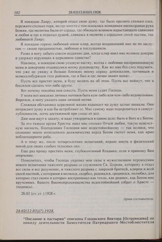 Послание к пастырям епископа Глазовского Виктора [Островидова] по поводу деятельности Заместителя Патриаршего Местоблюстителя митрополита Сергия [Страгородского] и его Временного Патриаршего Синода. 8.02(12.03)(?).1928 г. // Польский М., протопресвитер. Новые мученики российские. Джорданвилль, 1957. Т. 2.