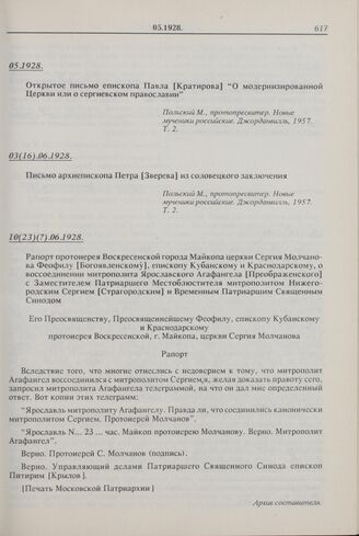 Открытое письмо епископа Павла [Кратирова] «О модернизированной Церкви или о сергиевском православии». 05.1928 г.