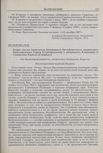Второе письмо Заместителя Патриаршего Местоблюстителя митрополита Нижегородского Сергия [Страгородского] к митрополиту Казанскому и Свияжскому Кириллу [Смирнову]. 20.12(02.01).1929 г.