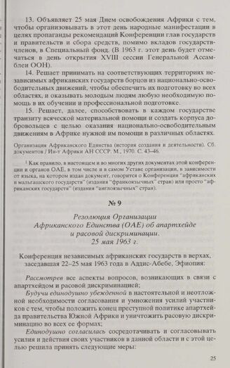 Резолюция Организации Африканского Единства (ОАЕ) об апартхейде и расовой дискриминации. 25 мая 1963 г.